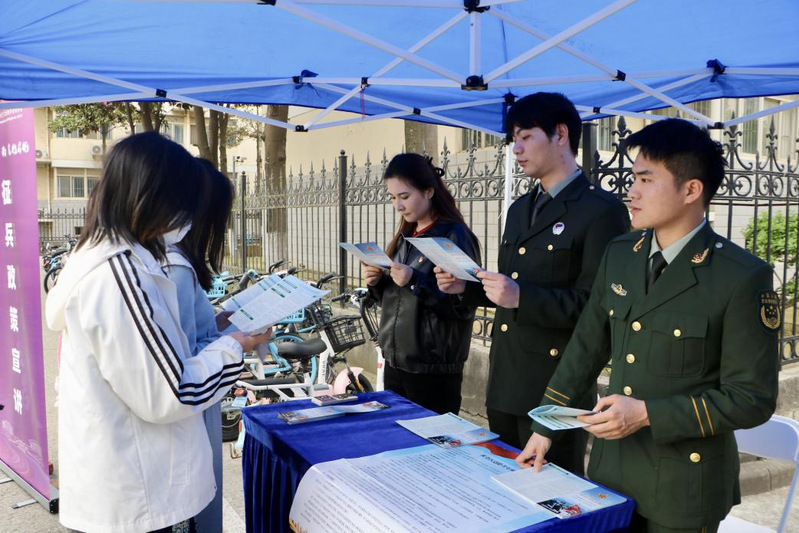 学校退役士兵骨干开展征兵政策宣讲,用朴实真挚的话语分享军营里的成长与蜕变、责任与担当,围绕同学们关心的征兵条件、服役待遇等问题,进行细致解读、耐心答疑。