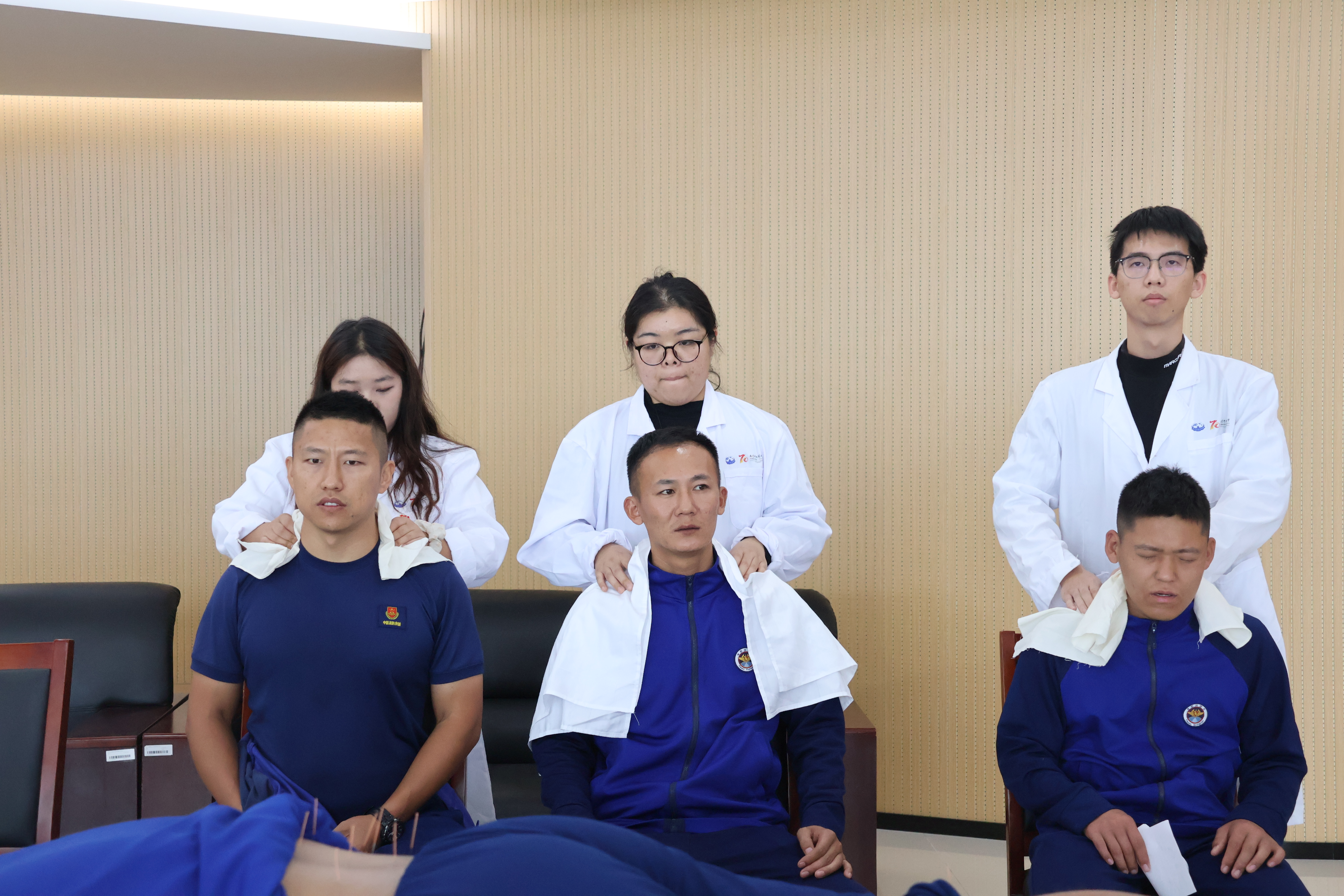 在第一临床医学院冯哲老师与针灸推拿学院·养生康复学院杨小存老师的指导下,服务团成员为消防员们提供了系统化的中医药健康服务。冯哲老师带领研究生通过“望闻问切”,为消防员辨证开方,给出调理建议。多位消防员在杨小存老师的针灸治疗后表示疼痛得到有效缓解,纷纷赞叹针灸的魅力与神奇。针对消防员们高强度训练引发的肌肉劳损与关节损伤,服务团成员通过揉、捏、按、推等技巧,为消防员们舒缓肩颈与腰背的紧张酸痛。通过八段锦教学,帮助消防员们利用碎片化时间进行养生保健,将“治未病”的理念悄然播撒进消防员们的心间。结合消防员们的职业特点与常见亚健康状态,服务团特别准备了节气养生花茶,并详细讲解其功效。中药香牌制作环节,消防员们在动手体验中了解香牌的药用价值与文化内涵。